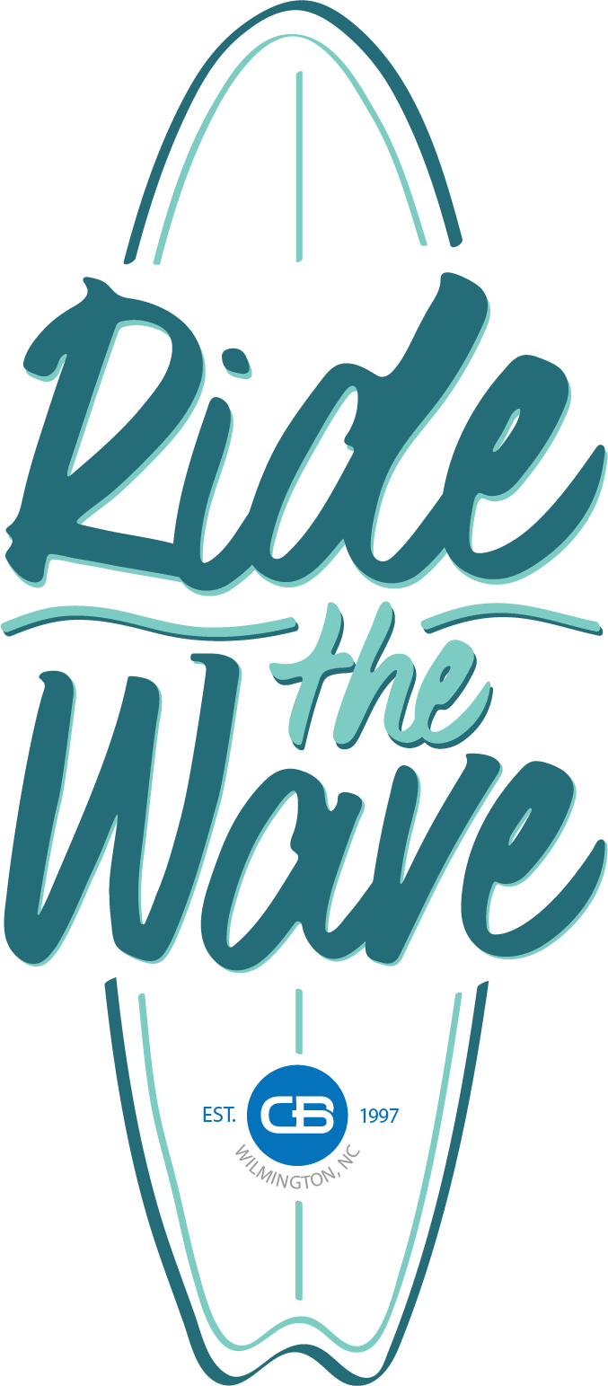 Concepts: I created the Ride the Wave typographic treatment as a handwritten sketch. After converting it into a digital format and refining it, it became a strong, layered wordmark. The versatile design could appear as a sticker design, t-shirt graphic, web graphics, used on print materials, and so much more. I was able to expand the design of the wordmark to pair with an organic surfboard illustration. This allowed for the design to become an iconic graphic that supports the annual Wave campaign. The selected color palette includes teal and seafoam colors to relate to ocean elements and is combined with brand colors. The palette and scale helped establish heirarchy within the design. As part of a two–sided t–shirt concept, I chose to implement the full graphic on the back. On the front, I created a lockup around the "CB" logomark to signify the year CastleBranch's headquarters opened.